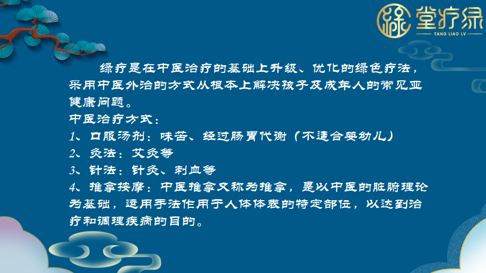 品牌名稱:綠療堂 主營(yíng)產(chǎn)品:綠療堂小兒推拿 品牌特色:綠色療法 安全健康