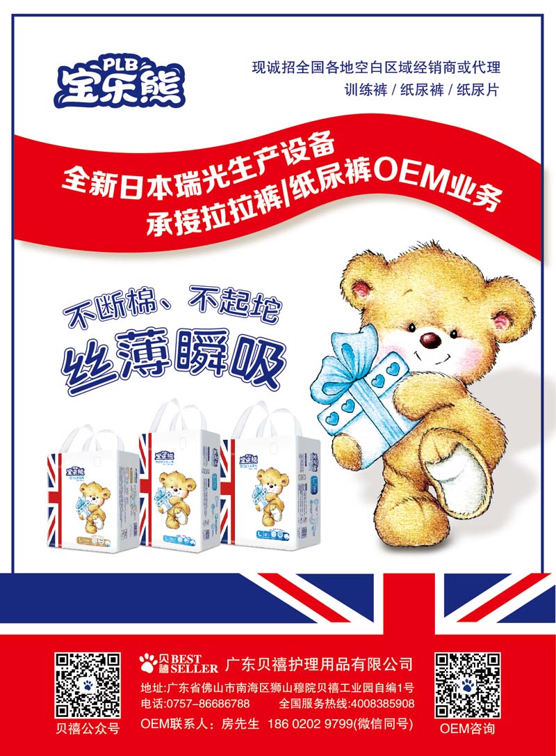 寶樂熊是廣東貝禧護(hù)理用品有限公司旗下主打品牌,有紙尿褲、紙尿片、拉拉褲三大系列。采用絲薄瞬吸芯體,不起坨、不斷棉。高效透氣底層+打孔面不雙向透氣,排出悶熱濕氣,保持屁屁干爽舒適。雙層立體褶邊有效防止尿液側(cè)漏,大面積透氣腰圍,有效減少后漏;強(qiáng)力SAP高分子吸收珠珠,快速吸收。柔軟合身,貼身保護(hù)。