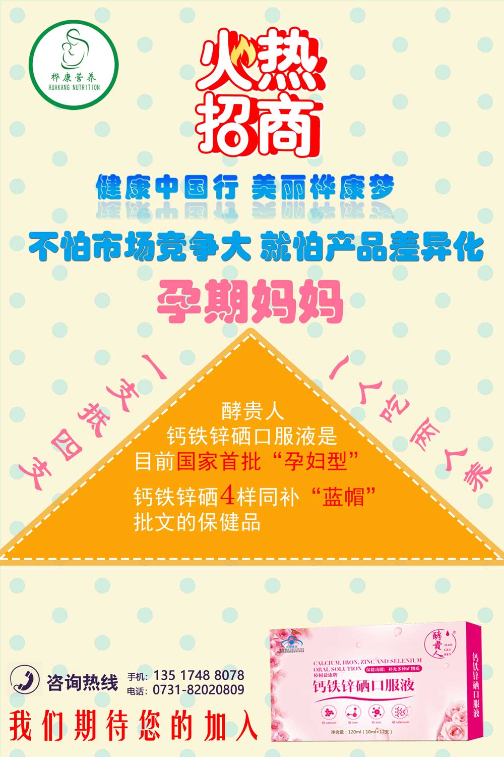 品牌名稱:酵貴人 主營產(chǎn)品:酵貴人鈣鐵鋅硒口服液 品牌特色:藍(lán)帽認(rèn)證 品質(zhì)保證