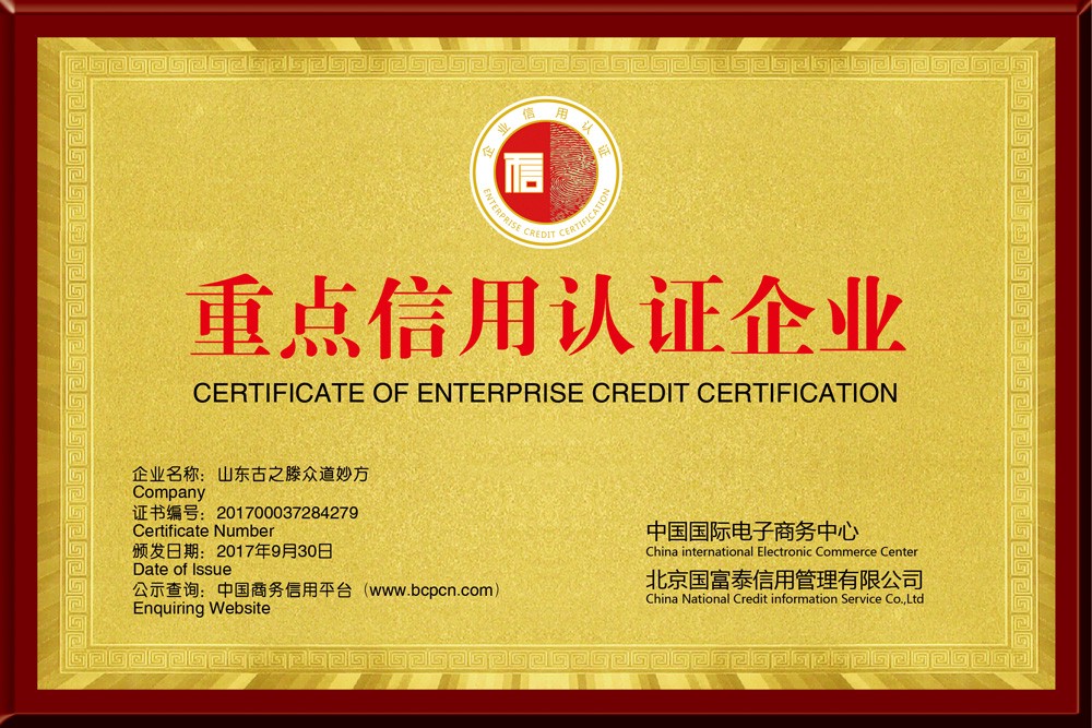 ◆2017年9月30日被中國國際電子商務中心 、北京國富泰信用管理有限公司授予重點信用認證企業(yè),并頒發(fā)證書銅牌和證書。