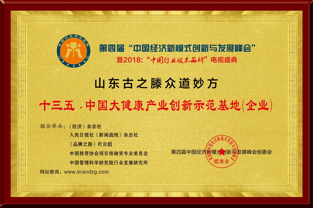 ◆2019年1月12日,山東古之滕商務發(fā)展有限公司榮獲“十三五· 中國大健康產(chǎn)業(yè)創(chuàng)新示范基地”;董事長李瑞生榮獲“2018中國大健康產(chǎn)業(yè)風云人物”。