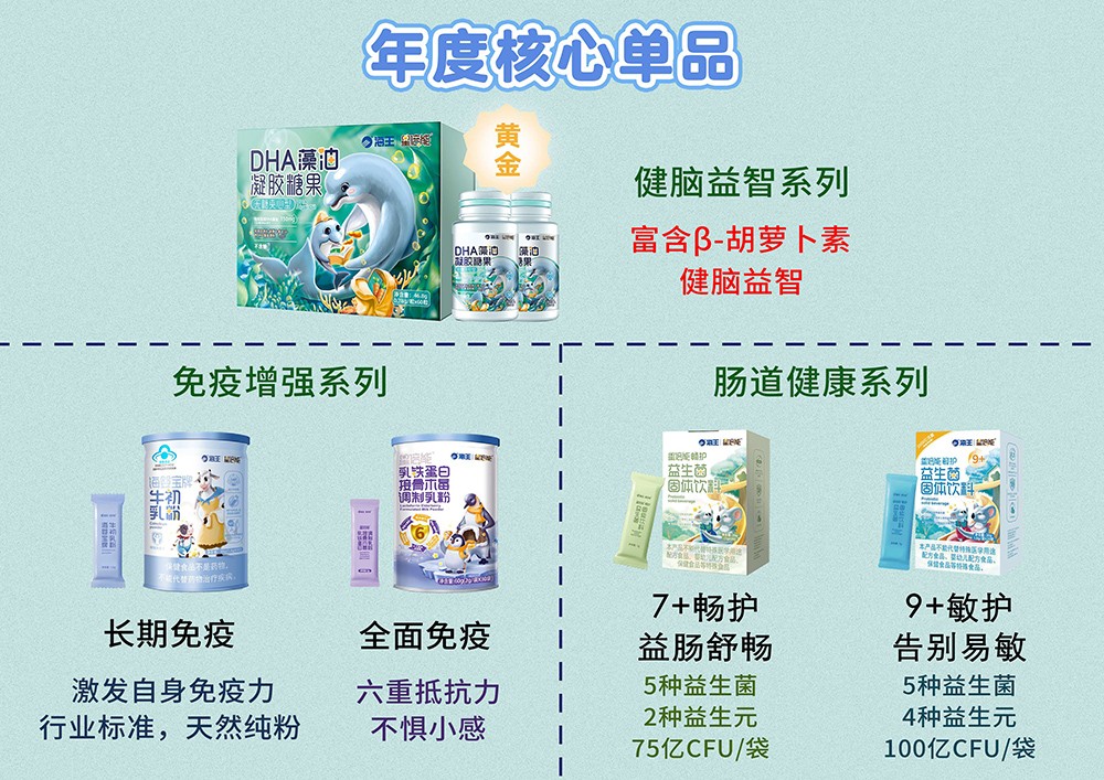品牌名稱:海王星倍能 主營產(chǎn)品:海王星倍能藍(lán)帽軟膠囊,DHA,益生菌,乳鐵蛋白,鈣鐵鋅 品牌特色:海王星倍能嬰童營養(yǎng)保健品