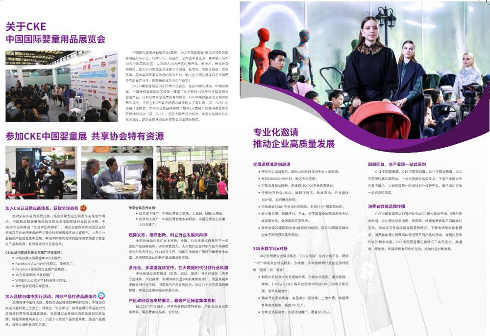 CKE中國嬰童展是全球領(lǐng)先的嬰童用品商貿(mào)平臺(tái),以國際化、高品質(zhì)、全渠道享譽(yù)亞洲,集中展示全球新產(chǎn)品、新技術(shù)、新設(shè)計(jì)及新趨勢,助力企業(yè)對接代理商、批發(fā)商、母嬰連鎖店、百貨商場、超市賣場等,助力企業(yè)領(lǐng)先競爭對手拓展更多優(yōu)質(zhì)合作伙伴,挖掘新的業(yè)務(wù)方向與商機(jī)!
