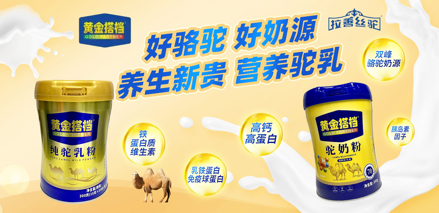 黃金搭檔駝奶粉,源自內(nèi)蒙阿拉善山腳下自然牧場,精選雙峰駱駝奶源。駝奶富含鈣、鐵、蛋白質(zhì)、維生素、免疫球蛋白、類胰島素等營養(yǎng)素,科學(xué)配比,均衡營養(yǎng)。低乳糖、不刺激,更多人營養(yǎng)補充的理想之選。