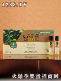 特級(jí)晶品核桃油是由河北晶品果業(yè)有限公司生產(chǎn),公司種植基地建有林果示范園800畝,栽植有日本“斗南”蘋果5萬(wàn)余株,占地600畝;“香玲”優(yōu)種核桃2萬(wàn)余株,占地200畝。公司林果示范園完全按照有機(jī)食品規(guī)范組織生產(chǎn)。在2005年10月舉辦的第九屆中國(guó)(廊坊)農(nóng)產(chǎn)品交易會(huì)上,公司選送的“晶品”牌蘋果與核桃雙雙榮獲“中國(guó)果王”之稱。
