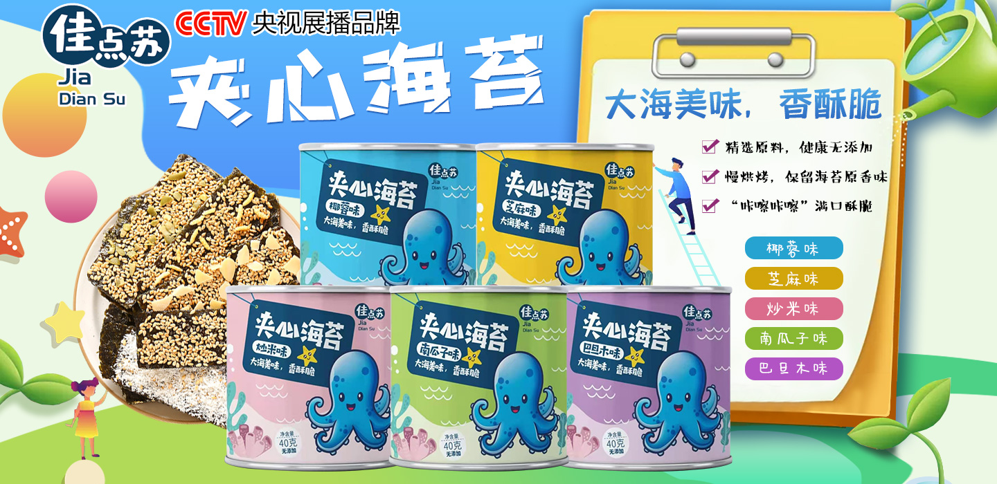 品牌名稱:佳點(diǎn)蘇 主營產(chǎn)品:佳點(diǎn)蘇夾心海苔 品牌特色:大海美味 香酥脆
