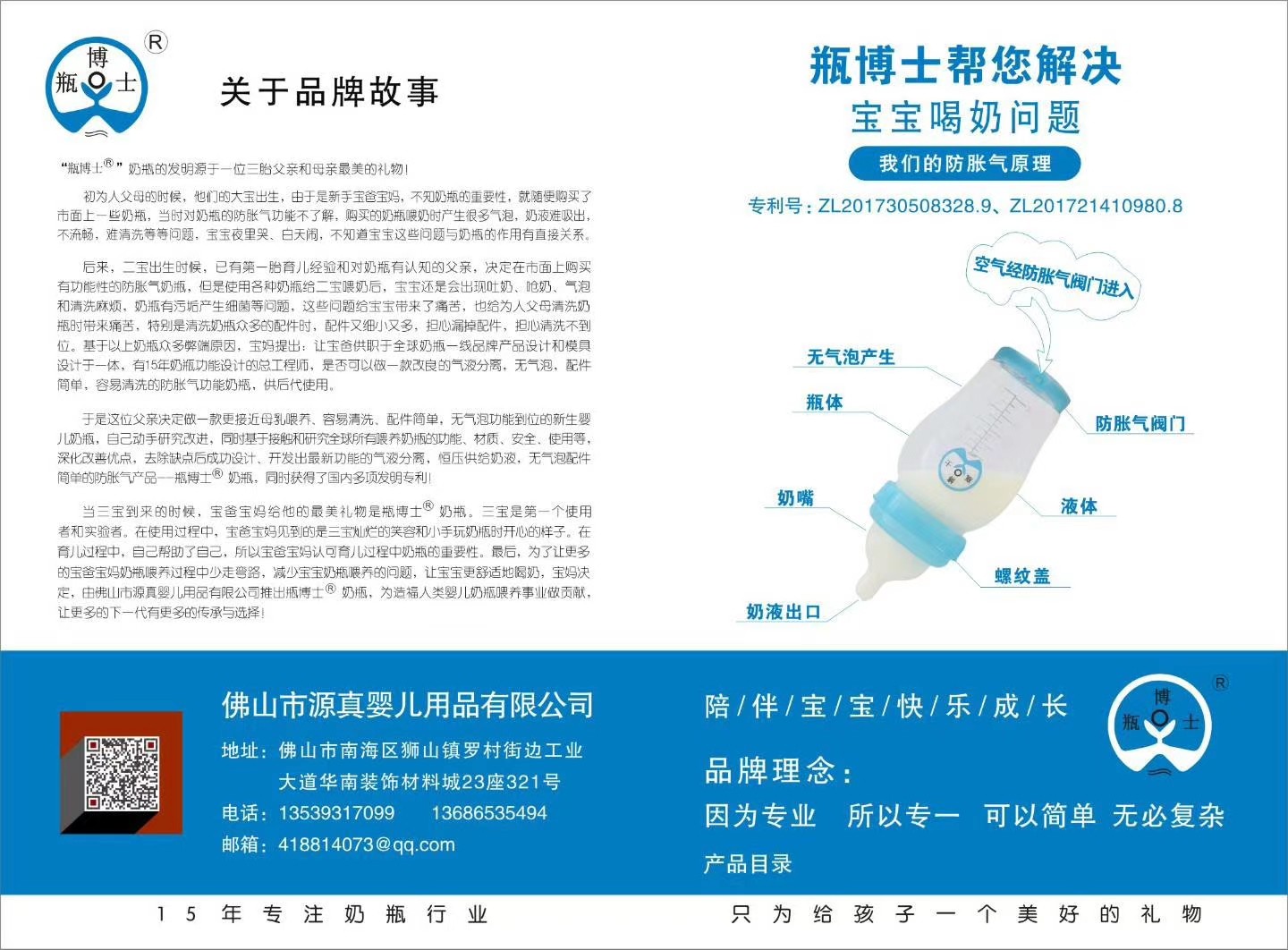 佛山市源真嬰兒用品有限公司,是一家集研發(fā)、生產、銷售為一體的現代化企業(yè),旗下品牌“瓶博士”,專注奶瓶、奶嘴等母嬰產品的研發(fā)及生產,堅持以品質樹立口碑,持續(xù)開發(fā)和創(chuàng)新,為億萬家庭的寶寶提供時尚、健康、安全、舒適的生活用品。