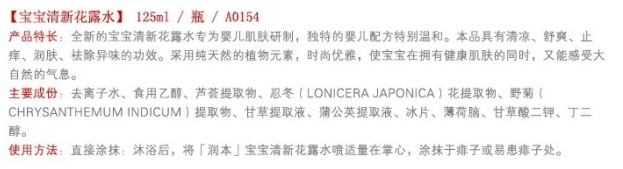 潤本草本防蚊沐浴露秉承中華傳統(tǒng)中醫(yī)藥理論,結(jié)合現(xiàn)代生產(chǎn)工藝,專門針對嬰兒肌膚特點(diǎn)研制,含多種天然植物精華于一體,精制而成。薄荷其清涼的感覺,能收縮微血管、舒緩發(fā)癢、也可柔軟肌膚;香茅精油有效特性是驅(qū)蟲,依靠其獨(dú)特的香味驅(qū)蚊,避免蚊蟲的叮咬,是驅(qū)蚊護(hù)膚的必備良品。