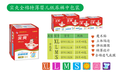 實爽全棉特薄嬰兒紙尿褲是福建天樂衛(wèi)生用品有限公司的主打產品,福建天樂衛(wèi)生用品有限公司始終認為,品質是給廣大客戶的zui好承諾,所以,福建天樂衛(wèi)生用品有限公司堅持以質量為中心,全心全意為客戶服務,實爽全棉特薄嬰兒紙尿褲質量上乘,品質保證,現(xiàn)面向全國各地空白區(qū)域招商,歡迎各地行業(yè)人士前來咨詢,福建天樂衛(wèi)生用品有限公司真誠為您服務!