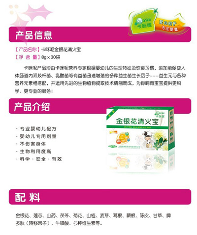 卡咪呢小兒板藍(lán)根顆粒是上?ㄟ淠啬笅胗闷酚邢薰酒煜庐a(chǎn)品,專為嬰幼兒設(shè)計,專業(yè)、安全,幫助寶寶可以預(yù)防感冒抵抗病毒,是廣大父母育兒的好幫手?ㄟ淠匦喊逅{(lán)根顆粒不含任何色素、防腐劑,安全放心。