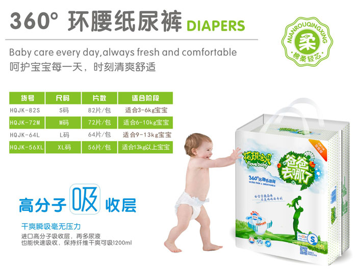 花琪寶貝360°環(huán)腰紙尿褲,為寶寶量身定制,口碑炸裂,4重防側(cè)漏設(shè)計(jì),12小時(shí)超長(zhǎng)鎖水,上市即熱賣,經(jīng)銷商競(jìng)逐代理權(quán)。