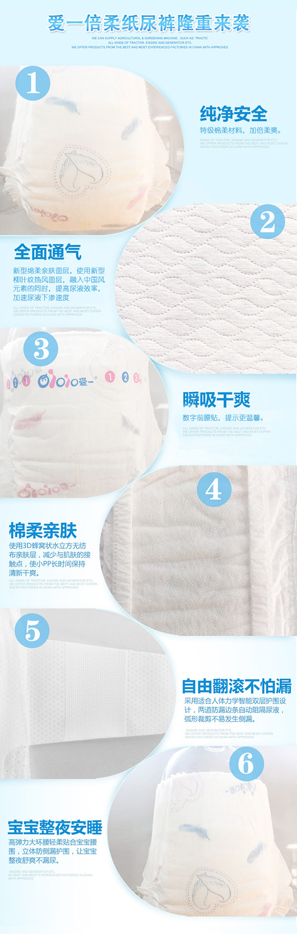 愛(ài)一倍柔纖薄嬰兒環(huán)腰褲,采用特級(jí)綿柔材料,加倍柔爽,純凈安全;新一代零觸感吸收芯體,快速吸收的同時(shí),緊鎖水份不反滲,確保纖薄透氣,讓寶寶安睡到天亮。
