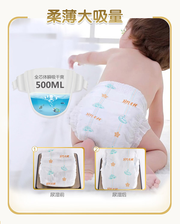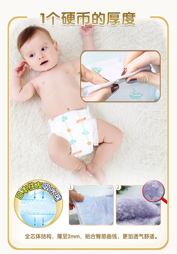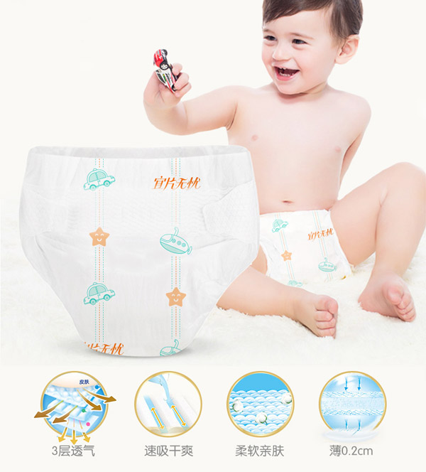 宜片無憂童趣紙尿褲采用熱風(fēng)材質(zhì),親膚柔軟,選用柔軟熱風(fēng)凸點(diǎn)無紡布作為面料,具有蓬松度高,彈性好,手感柔軟,透氣性好等特點(diǎn),寶寶穿著舒適,玩的開心,睡得安心。
