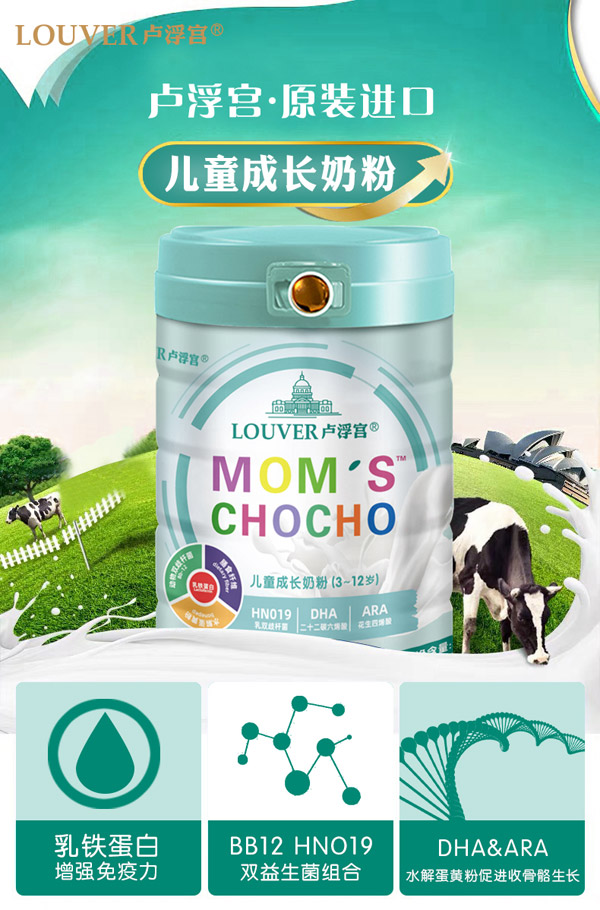 LOUVER盧浮宮兒童奶粉不僅暖暖的,且更健康更營養(yǎng)。甄選歐洲黃金奶源,結(jié)合中國兒童的人體營養(yǎng)結(jié)構(gòu)特點(diǎn)設(shè)計(jì)配方,富含30多種營養(yǎng)成分,專為兒童身高、智力、視力、腸道吸收、均衡多個(gè)方面,科學(xué)配比雙益生菌、雙益生元、乳鐵蛋白、水解蛋黃粉、DHA&ARA五大成分。