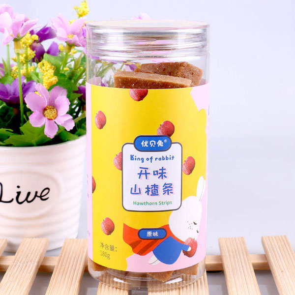 優(yōu)貝兔開味山楂系列精選優(yōu)級山楂果制作,酸甜軟糯,鮮果打漿,無色素、香精、防腐劑。有原味、草莓味、藍莓味、桑葚味等多種不同的口味。