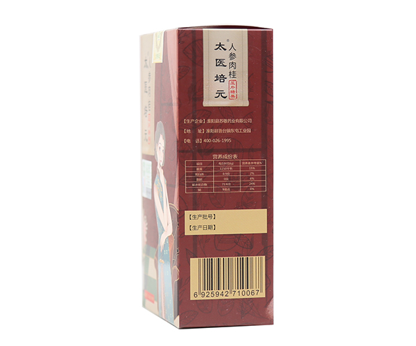 主要成分:人參、海參肽、肉桂、干姜、黑枸杞、桑葚、牡蠣肽、櫻桃、黑胡椒、羊骨肽、陳皮。