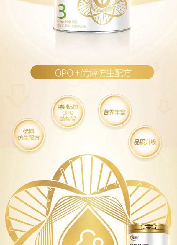 優(yōu)博金愛嘉幼兒配方奶粉(12-36月齡,3段)900g聽
