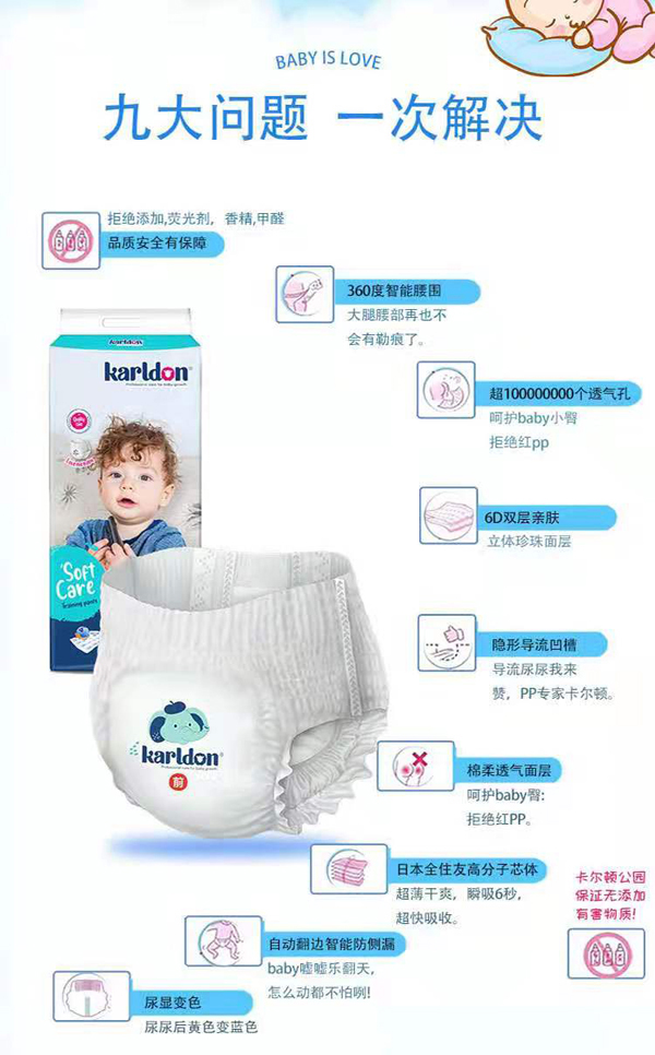 卡爾頓公園拉拉褲,專為長(zhǎng)時(shí)間使用而設(shè)計(jì),能持久保持寶寶小屁屁干爽,透氣加倍,遠(yuǎn)離紅屁屁!快速6秒瞬吸鎖水,超薄柔軟,百分百全住友吸水因子,當(dāng)然更“靠譜”!6D復(fù)合技術(shù),隱藏式導(dǎo)流凹槽工藝,上億個(gè)微孔透氣,干雙加倍,舒適加倍!同時(shí)更采用人體工程學(xué)設(shè)計(jì),貼合小屁屁,減少腿部摩擦,穿脫建議,寶寶喜歡,媽媽省心!