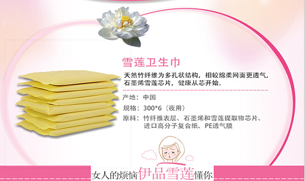 伊品雪蓮衛(wèi)生巾,采用天然竹纖維、石墨烯雪蓮芯、進(jìn)口高分子復(fù)合紙、PE透氣膜等為主要原料,天然竹纖維為多孔狀結(jié)構(gòu),相較綿柔網(wǎng)面更透氣,石墨烯雪蓮芯片,健康從“芯”開(kāi)始。植物提取,清潔私處,吸水透氣,不含熒光劑,健康更安心。更有超強(qiáng)吸收力,不回滲,沒(méi)有異味,擺脫尷尬;粘黏力好,穩(wěn)貼內(nèi)褲補(bǔ)位移。每片均為獨(dú)立包裝,方便更衛(wèi)生,超薄更舒適,有芯更貼心!
