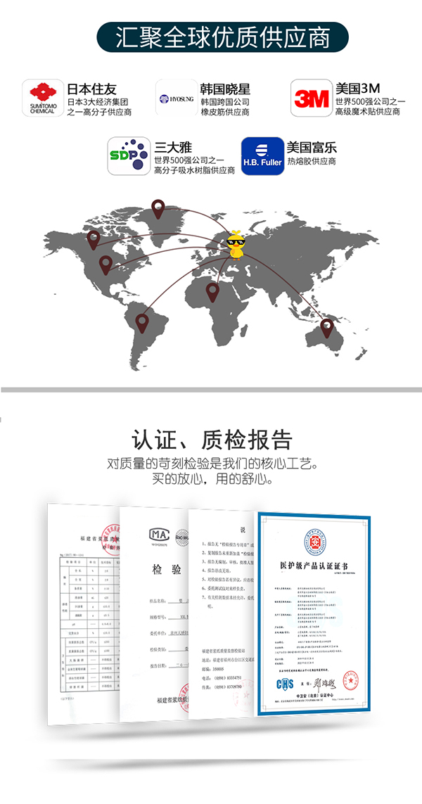 進口高分子結(jié)構(gòu),可以吸收約自身重量30倍的水分,保持屁屁持久干爽