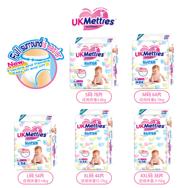 UKMETTRES紙尿褲采用柔軟面料,3D珍珠柔點導(dǎo)流面層,加速導(dǎo)流,不悶不熱,輕柔呵護(hù)小屁屁,超薄瞬吸芯體,高分子魔術(shù)吸水珠珠,3秒速吸并強效鎖住尿濕,媽媽不用擔(dān)心寶寶尿濕褲子,大小凹凸空氣墊,瞬吸干爽不側(cè)漏。
