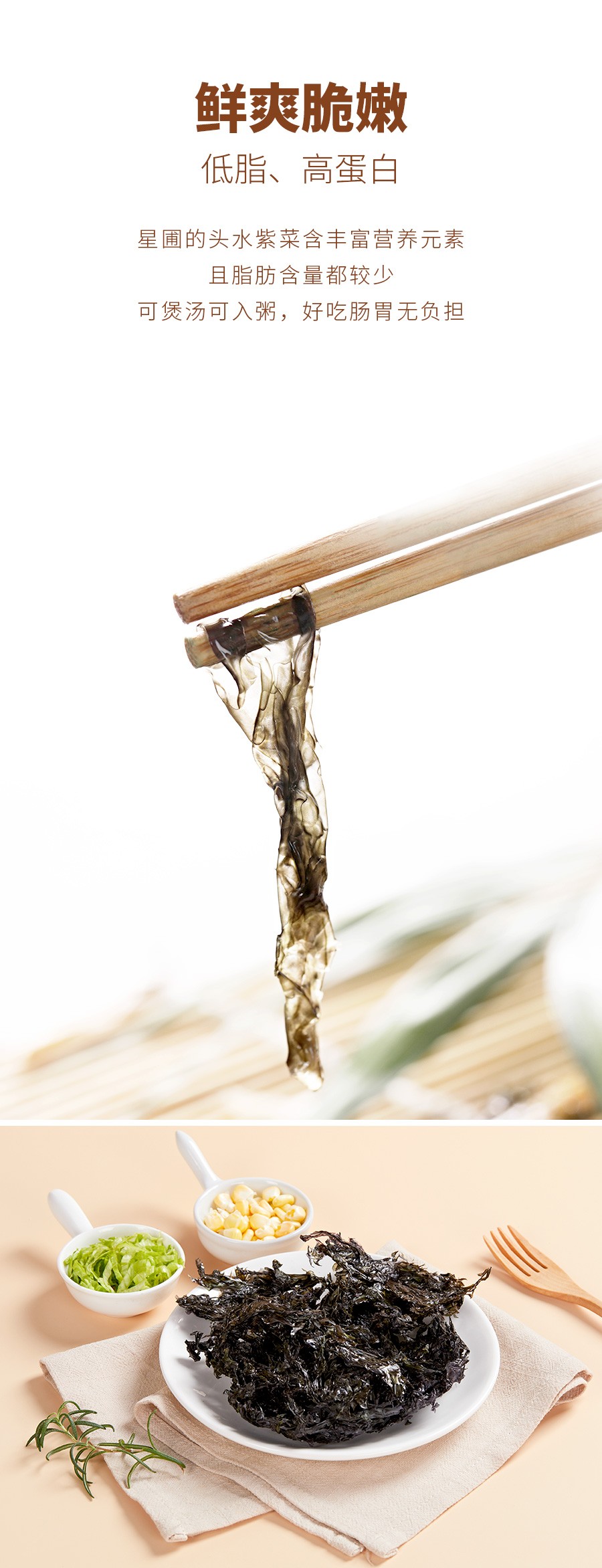 星圃頭水紫菜,產(chǎn)自浙江省西門島,天然地形優(yōu)勢,水質(zhì)肥沃,為了減少陽光和溫度對紫菜的影響,常常凌晨三點左右捕撈頭水紫菜原料,頭水紫菜含有豐富營養(yǎng)物質(zhì),低脂高蛋白,鮮爽脆嫩,好吃無負(fù)擔(dān)。
