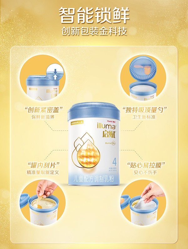 惠氏藍(lán)鉆啟賦4段兒童奶粉(升級版)屬于愛爾蘭進口產(chǎn)品,適用于兒童,添加了膽堿、;撬帷HA、ARA/AA等常規(guī)強化配方,以及OPO、葉黃素、β-胡蘿卜素特色強化配方,其中OPO含量為3g/100g,其低聚半乳糖為乳清濾出液來源,含量為4.6g/100g。