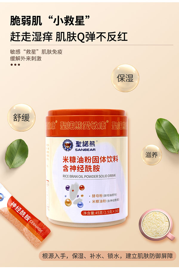 神經(jīng)酰胺是皮膚屏障的重要組成部分,過多流失會使肌膚出現(xiàn)泛紅、濕疹、敏感等問題!“圣諾熊米糠油粉”來啦!一款富含神經(jīng)酰胺的專業(yè)營養(yǎng)補充品!由中國人民保險承保,保額高達1000萬,放心好選擇!使用80000kg玄米,萃取出1kg神經(jīng)酰胺!更添加酵母提取物,從根源入手,幫助建立肌膚防御屏障,舒緩寶寶肌膚常見的瘙癢、濕疹、過敏等問題,品質(zhì)放心,媽媽信賴!