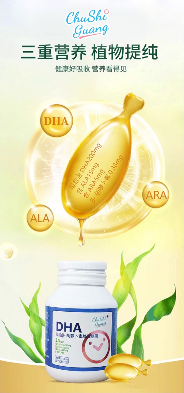品名:DHA藻油凝膠糖果凈含量:68.4g規(guī)格:90粒(0.76g/粒x90粒)