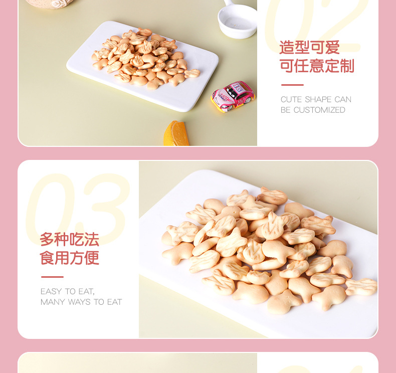貼牌定制小魚(yú)造型餅干500g兒童食品廠家批發(fā)OEM牛奶味韌性餅干