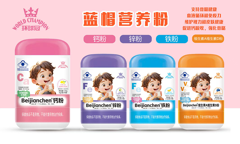 環(huán)球冠藍(lán)帽營養(yǎng)粉,有鈣粉、鐵粉、鋅粉、維生素A維生素D粉,共四款,優(yōu)選原料,科學(xué)配比,營養(yǎng)均衡,具有藍(lán)帽認(rèn)證的保健功能。全力支持骨骼健康、血液循環(huán)和免疫力,維護(hù)視力和皮膚健康,助力鈣吸收,強化骨骼。