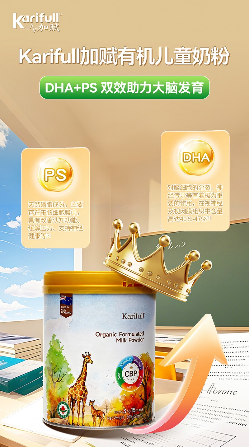 加賦有機兒童MCT配方奶粉通過中紐雙重有機認(rèn)證,專為3-15歲兒童設(shè)計。產(chǎn)品以高營養(yǎng)密度和高吸收率為特點,核心“5維成長體系”全面支持骨骼、大腦、視力、免疫及吸收,助力孩子成長黃金期的營養(yǎng)需求。