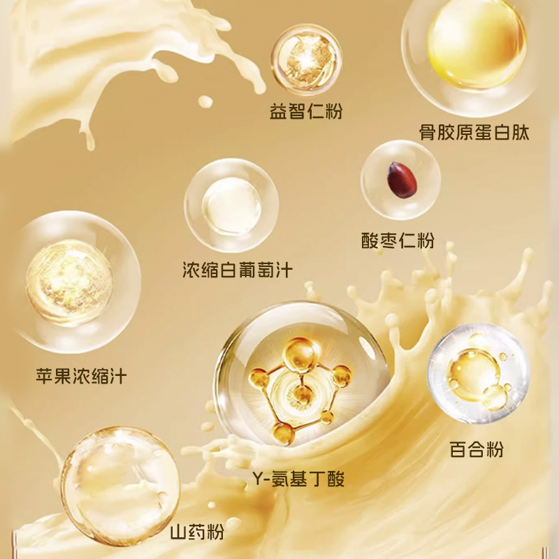 每袋添加Y-氨基丁酸250mg、骨膠原蛋白肽200mg、酸棗仁粉50mg