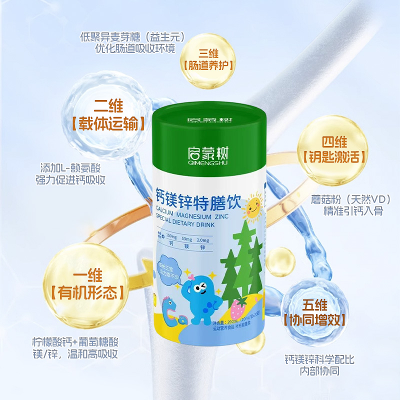 您所在位置:首頁>廣州啟蒙樹生物科技有限公司>啟蒙樹鈣鎂鋅特膳飲