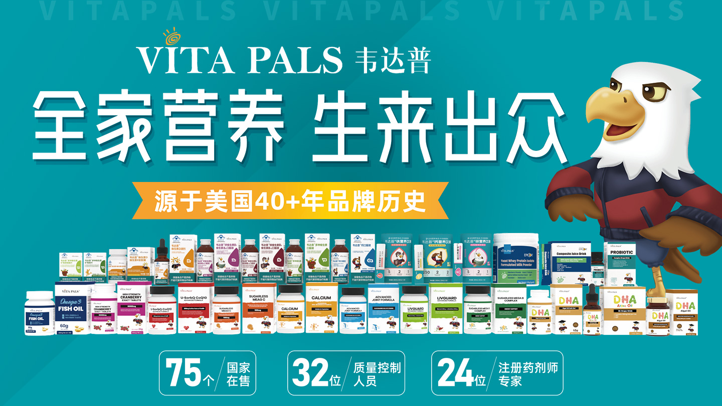 韋達(dá)普(VITA PALS)是來(lái)自美國(guó)原裝進(jìn)口的營(yíng)養(yǎng)健康品牌,工廠擁有美國(guó)FDA和cGMP的生產(chǎn)認(rèn)證。產(chǎn)品遠(yuǎn)銷北美、歐洲、亞洲、澳洲等75個(gè)國(guó)家和地區(qū)。2019年,青島宏寶生物科技有限公司正式與美國(guó)韋達(dá)普品牌全球運(yùn)營(yíng)總裁簽訂戰(zhàn)略合作協(xié)議,成為美國(guó)韋達(dá)普品牌中國(guó)獨(dú)家運(yùn)營(yíng)商。韋達(dá)普覆蓋多品類營(yíng)養(yǎng)產(chǎn)品,包含免疫、維生素、心血管、消化類產(chǎn)品,為各類人群定制專屬產(chǎn)品。