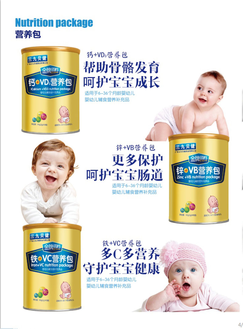廣東三九貝健藥業(yè)有限公司(以下簡稱:三九貝。┦菑V東工商,藥監(jiān),衛(wèi)生等多家部門批準(zhǔn)的一家以科研開發(fā),生產(chǎn),銷售,服務(wù)為一體的現(xiàn)代化,多元化新型醫(yī)藥企業(yè)。專業(yè)致力于保健食品,母嬰幼童營養(yǎng)食品,母嬰幼童營養(yǎng)保健品,醫(yī)療器械,藥妝日化,消毒產(chǎn)品,生物制品等產(chǎn)品。公司長期與生物技術(shù)領(lǐng)域標(biāo)準(zhǔn)化的專業(yè)研究機(jī)構(gòu)以及國內(nèi)外知名的優(yōu)秀生產(chǎn)企業(yè)密切合作采用了先進(jìn)專業(yè)的生物技術(shù),嚴(yán)格選用優(yōu)質(zhì)原料,采用國際先進(jìn)工藝,在符合藥品GMP和保健品GMP雙重標(biāo)準(zhǔn)的工廠生產(chǎn),所有產(chǎn)品經(jīng)過嚴(yán)格的質(zhì)量監(jiān)控體系,確保為社會大眾提供“安全、優(yōu)質(zhì)、高效、環(huán)!钡漠a(chǎn)品和服務(wù)。 公司秉承“誠實守信”的社會責(zé)任觀,堅持以“關(guān)愛大眾健康”為使命,以“品質(zhì)第一,誠實守信,健康為民,平等互惠”為經(jīng)營理念。