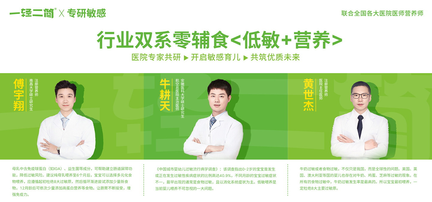 一輕二簡,雙細(xì)分品牌零輔食,敏感專研品牌!低敏+營養(yǎng),制定5A食養(yǎng)和5A防敏守則,即解決了敏寶喂養(yǎng)方案,又解決了敏寶營養(yǎng)攝入不足的痛點。成為行業(yè)標(biāo)桿,美好千萬家庭,走向國際舞臺!