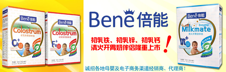 Bene倍能初乳鐵、初乳鋅、初乳鈣、清火開胃奶伴侶隆重上市,誠(chéng)招各地母嬰及電子商務(wù)渠道經(jīng)銷商、代理商!