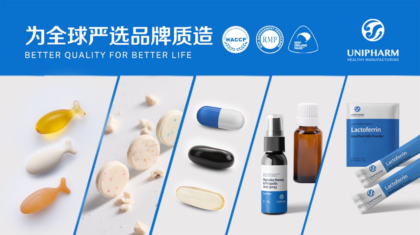 新西蘭聯(lián)合制藥 (Unipharm Healthy Manufacturing Co., Ltd) 建廠于1979年,擁有多年的保健品營養(yǎng)食品研發(fā)生產(chǎn)經(jīng)驗,致力于成為全球優(yōu)質(zhì)的營養(yǎng)健康解決方案服務(wù)商,為嚴(yán)選客戶“質(zhì)造”高標(biāo)準(zhǔn)營養(yǎng)產(chǎn)品。