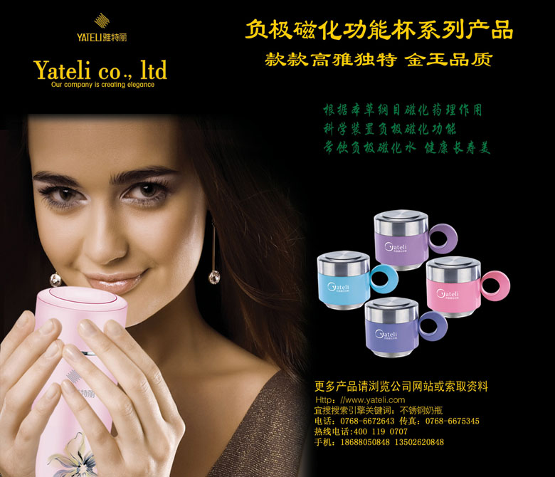 潮安縣雅特麗不銹鋼有限公司是一家集生產(chǎn)加工、經(jīng)銷批發(fā)的有限責(zé)任公司,磁化不銹鋼保溫杯、高級(jí)磁化不銹鋼茶葉罐是潮安縣雅特麗不銹鋼有限公司的主營產(chǎn)品。潮安縣雅特麗不銹鋼有限公司是一家經(jīng)國家相關(guān)部門批準(zhǔn)注冊的企業(yè)。潮安縣雅特麗不銹鋼有限公司以雄厚的實(shí)力、合理的價(jià)格、優(yōu)良的服務(wù)與多家企業(yè)建立了長期的合作關(guān)系。潮安縣雅特麗不銹鋼有限公司熱誠歡迎各界前來參觀、考察、洽談業(yè)務(wù)。