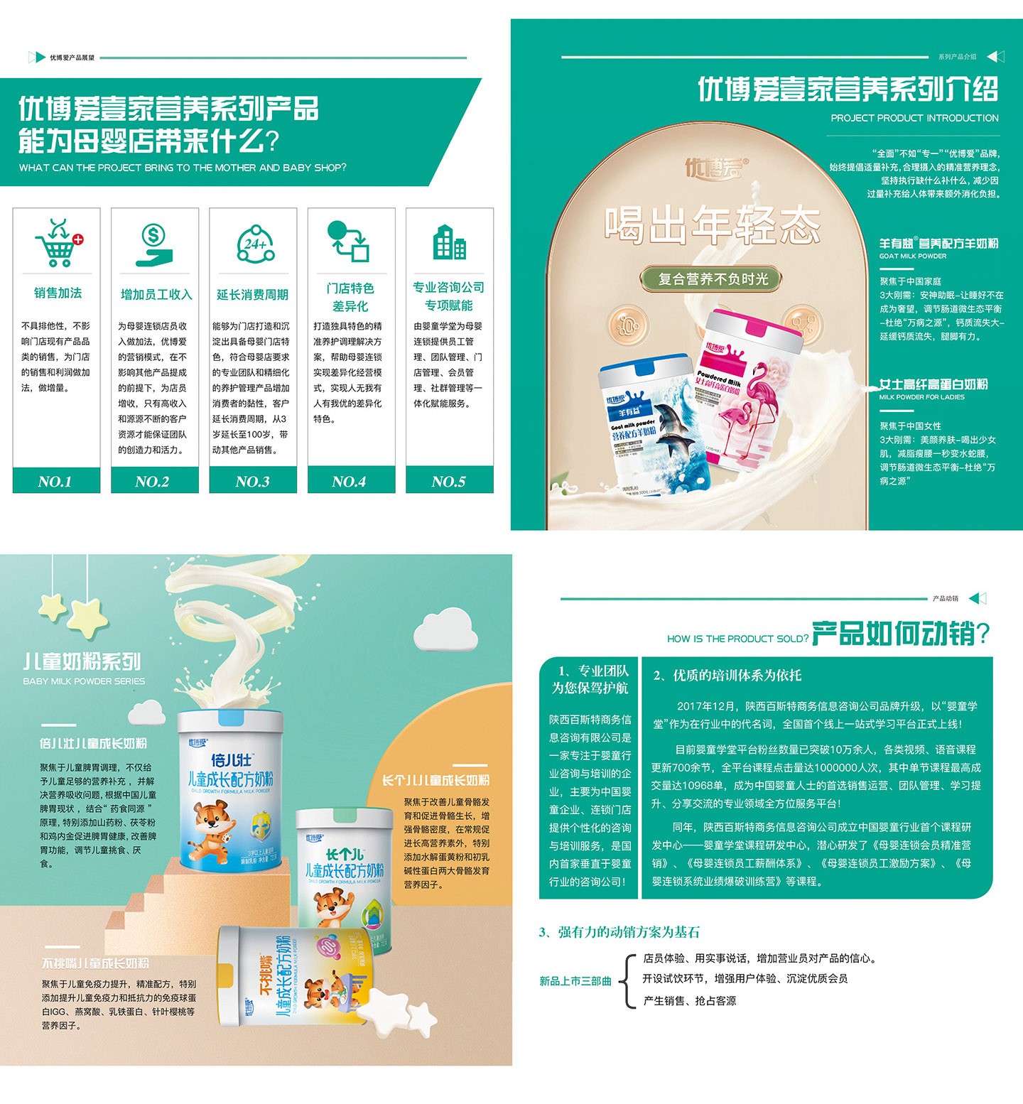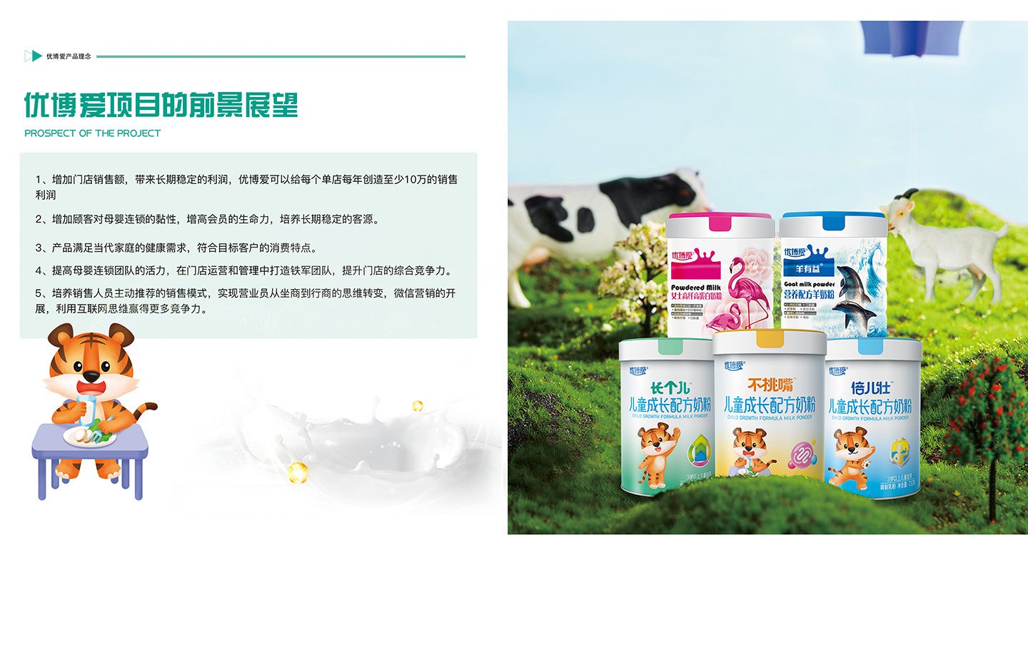品牌名稱:優(yōu)博愛(ài) 主營(yíng)產(chǎn)品:優(yōu)博愛(ài)兒童成長(zhǎng)奶粉,女士奶粉,羊奶粉 品牌特色:精準(zhǔn)營(yíng)養(yǎng)