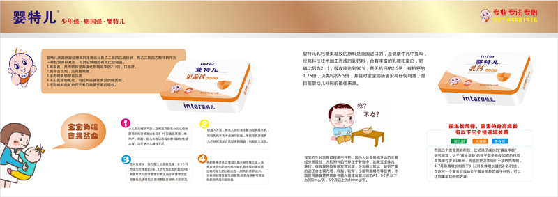 “嬰特兒”就是湖北英賽特醫(yī)藥科技有限公司旗下主打的嬰幼兒營養(yǎng)品品牌,它涵蓋了寶寶成長所需的多種營養(yǎng)品及輔食,如寶寶們輔食階段必備的嬰幼兒米粉系列,可以有效預(yù)防并緩解寶寶上火的清清寶系列,更有呵護寶寶腸道健康的益生菌系列以及助力寶寶健康成長的蛋白粉以及凝膠糖果系列。多系列多產(chǎn)品的研發(fā)和涉足,只是為了讓每一個寶寶都能擁有健康好身體,讓為人父母者更放心更安心,這就是嬰特兒品牌的初衷和美好心愿。