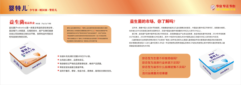 嬰特兒是湖北英賽特醫(yī)藥科技有限公司旗下的嬰童保健品牌,是一家從事嬰幼兒營養(yǎng)保健品的公司,關(guān)注您的健康是我們的使命,呵護您的快樂是我們的追求!我們將以強大的科研力量,不斷推出優(yōu)質(zhì)品種、不斷提升企業(yè)的綜合競爭力,將“嬰特兒”系列品牌成為健康產(chǎn)業(yè)領(lǐng)域的主力品牌。
