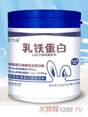 其中,每100g富力紛乳鐵蛋白富含1000mg的乳鐵蛋白和2100mg的免疫球蛋白,高純度,乳鐵蛋白+免疫球蛋白組合,雙效防護,科學配比鐵元素,有效提高鐵吸收率4-6倍,改善貧血,好吸收,更安全。