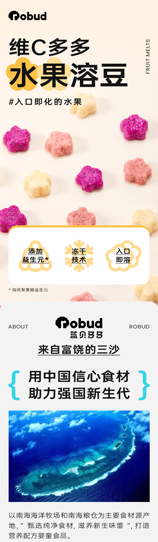 在新時(shí)代消費(fèi)群體的健康理念下,90后00后的家長(zhǎng)們更加注重寶寶入口零食的健康。對(duì)此藍(lán)貝多多兒童零食,一直專注于兒童入口的嬰童零輔食的健康與營(yíng)養(yǎng),深入研究,注重生產(chǎn)的每一個(gè)細(xì)節(jié),用上乘的品質(zhì)征服了眾多消費(fèi)者與經(jīng)銷商的心。這款藍(lán)貝多多維C多多水果溶豆產(chǎn)品更是深受消費(fèi)者的喜愛。