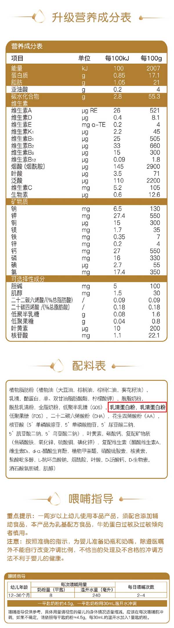 1、全脂、脫脂奶粉:新西蘭Fonterra 2、植物脂肪粉、D90乳清粉:愛(ài)爾蘭Kerry集團(tuán)3、a-乳白蛋白:美國(guó)Hilma 4、水解乳清蛋白:新西蘭Tatua 5、復(fù)配維生素、礦物質(zhì):荷蘭皇家迪思曼