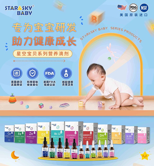 星空寶貝兒童營養(yǎng)滴劑,有益生菌、鈣鐵鋅、接骨木莓、消化酶、乳糖酶等多款單品,美國原裝進(jìn)口,精研品質(zhì),高含量,易吸收,無負(fù)擔(dān)。液態(tài)滴劑形式,食用方便,口感適宜,隨時(shí)補(bǔ)充。