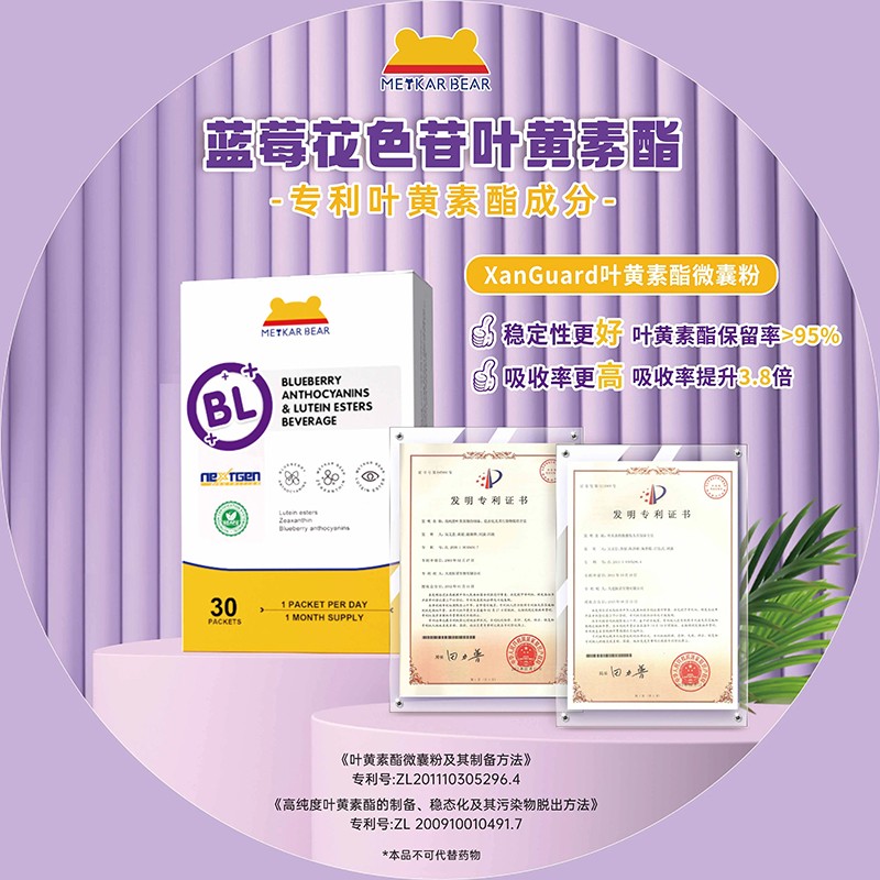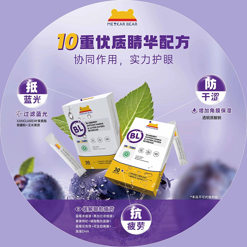 此次參展,瑞普斯攜旗下MEYKARBEAR美卡熊品牌新品——藍莓花色苷葉黃素酯飲品重磅亮相。這款采用條帶飲劑型設計的護眼佳品,巧妙融合了藍莓與葉黃素酯的自然精華,特含專利成分XanGuard葉黃素酯微囊粉100mg,采用專利微囊包裹技術,確保營養(yǎng)成分穩(wěn)定,更易被吸收,補充眼睛所需,讓眼部健康更有保障。