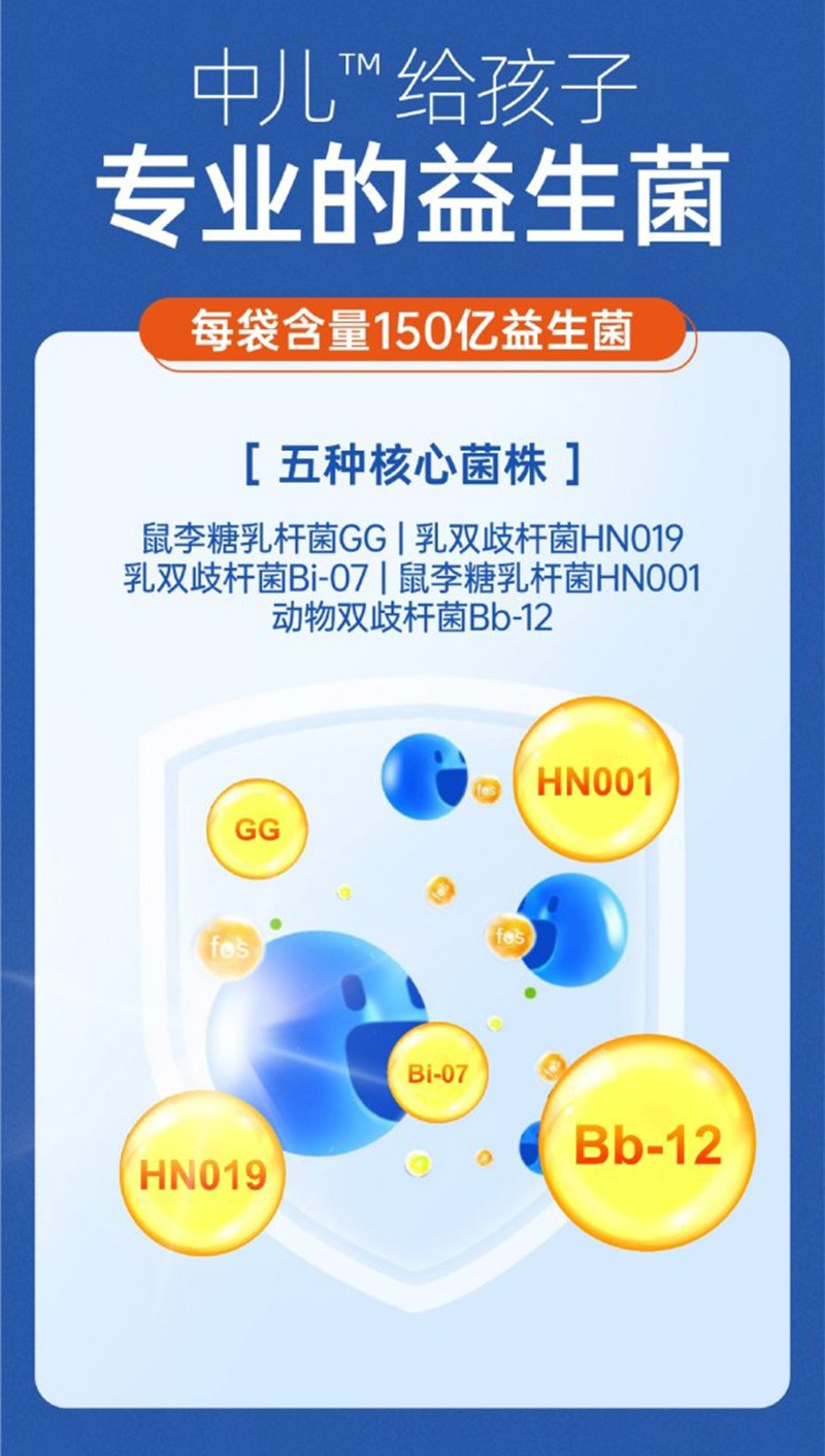 [配料表]抗性糊精、赤蘚糖醇、低聚果糖、香蕉原粉、鼠李糖乳桿菌GG、乳酸菌復(fù)配粉(鼠李糖乳桿菌GG、乳雙歧桿菌HN019、乳雙歧桿菌Bi-07、抗性糊精、鼠李糖乳桿菌HNO01、動物雙歧桿菌Bb-12)、維生素C