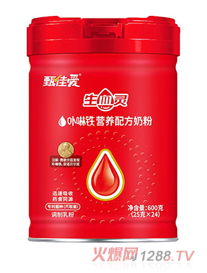 甄佳愛生血靈卟啉鐵配方奶粉,在配方上頗具亮點。其采用卟啉鐵配方,卟啉鐵的發(fā)現(xiàn)者漢斯・費歇爾曾獲諾貝爾獎,這為產(chǎn)品的配方科學(xué)性提供了有力背書。同時,產(chǎn)品運用專利菌種(六聯(lián)菌),屬于藥食同源的調(diào)制乳粉,每罐凈含量為 600 克,采用 25 克 ×24 的獨立包裝形式,方便消費者按需取用。